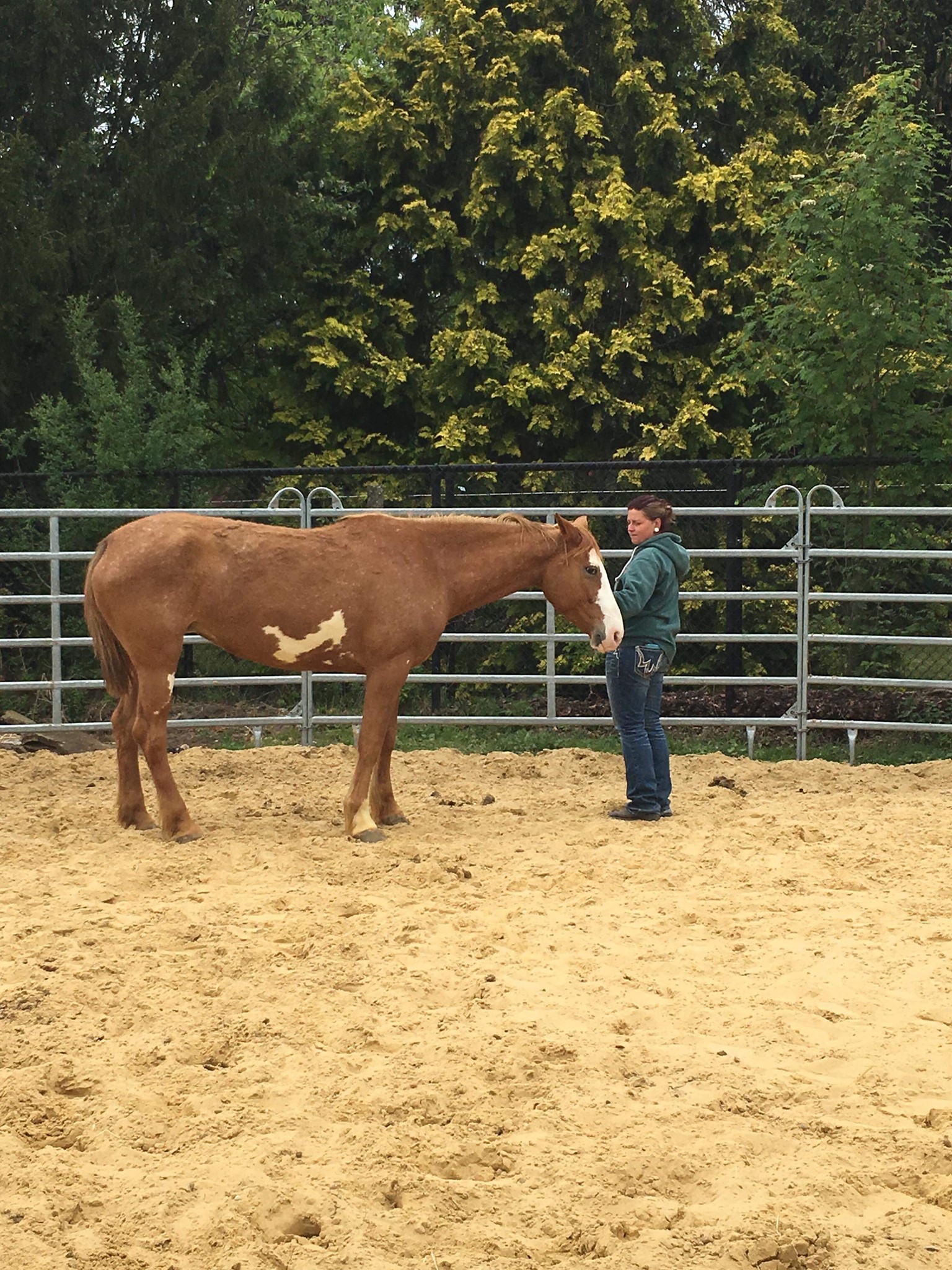 Zu Beginn des Trainings bleibt sie immer noch gerne auf Distanz, aber nach ein paar Minuten will sie bei mir sein und ist interessiert an dem, was ich mit ihr machen möchte.