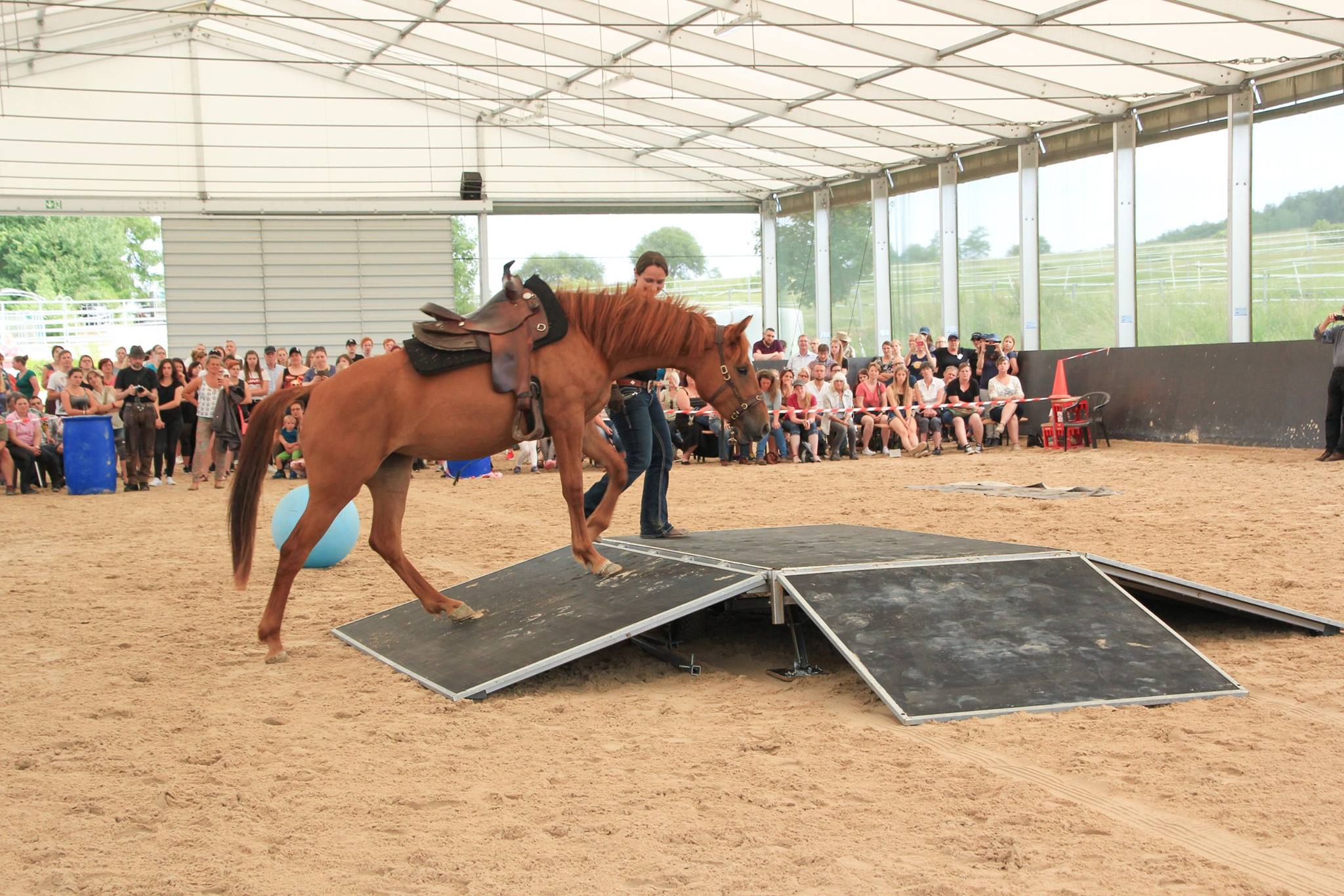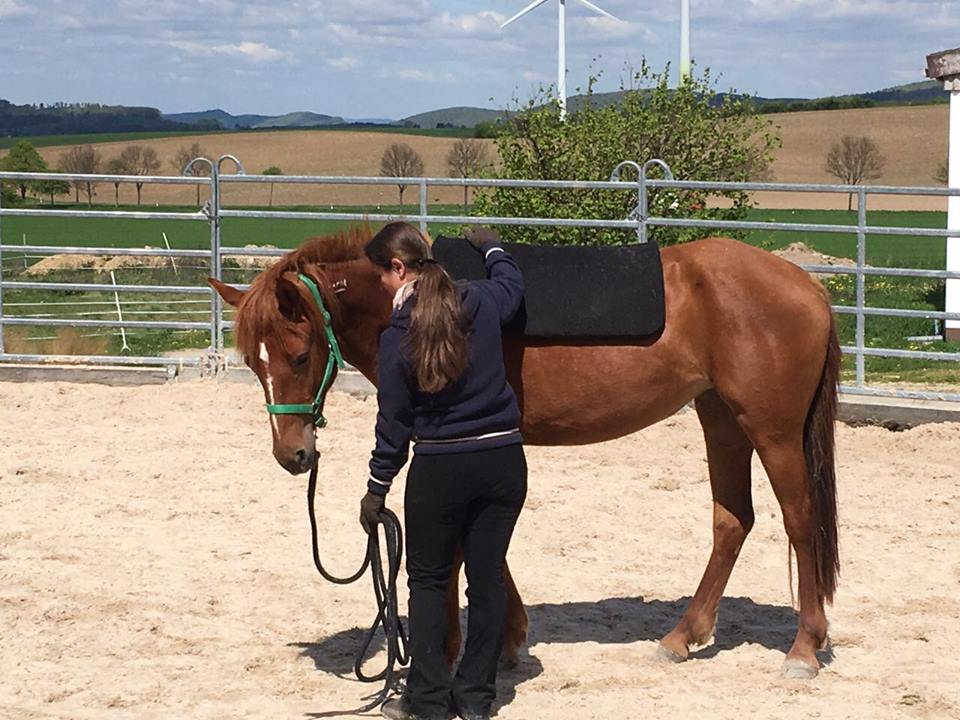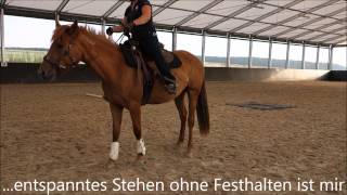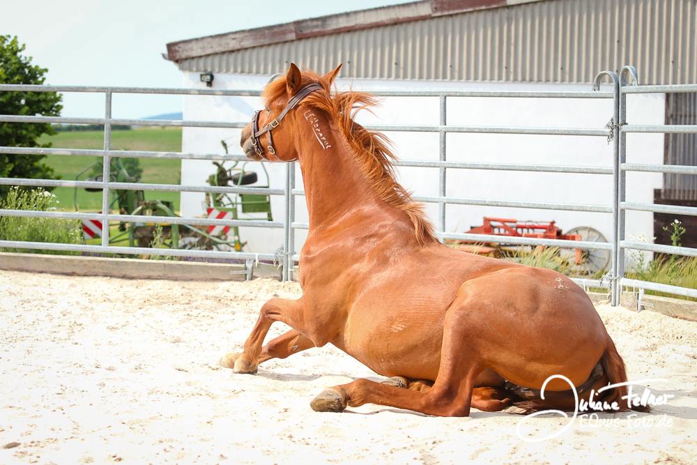 "Equiteams Goldeneye" ist sehr neugierig und lernt neue Dinge unglaublich schnell. Sie ist sehr motiviert bei der Sache, wenn ich mit ihr arbeite. Die Stute hat einen starken Charakter, weiß was sie will und zeigt auch wenn sie etwas nicht mag. Mit viel Druck kann man hier gar nichts erreichen, sondern mit Klarheit und viel Lob. Ich erlebe sie sehr menschenbezogen und bin überzeugt, dass sie "ihrem" Menschen mal ein treuer Begleiter sein wird.