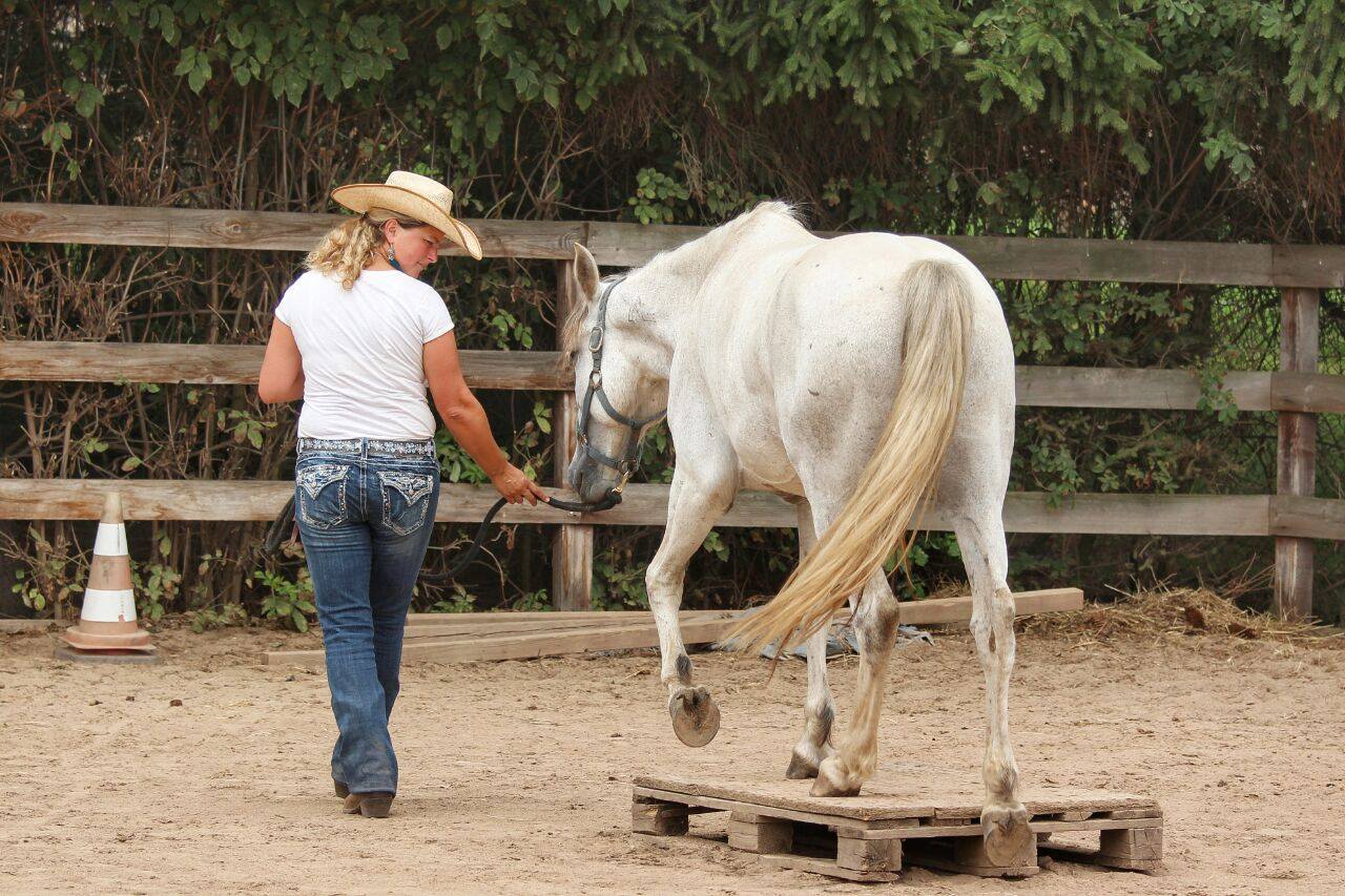 Die Ausbildung von TAG 8200 geht weiter. Auch fremden Personen schenkt  Sie  beim Trail at Halter auf unserem Hofturnier mit Reitschülerin  Nicole volles Vertrauen...