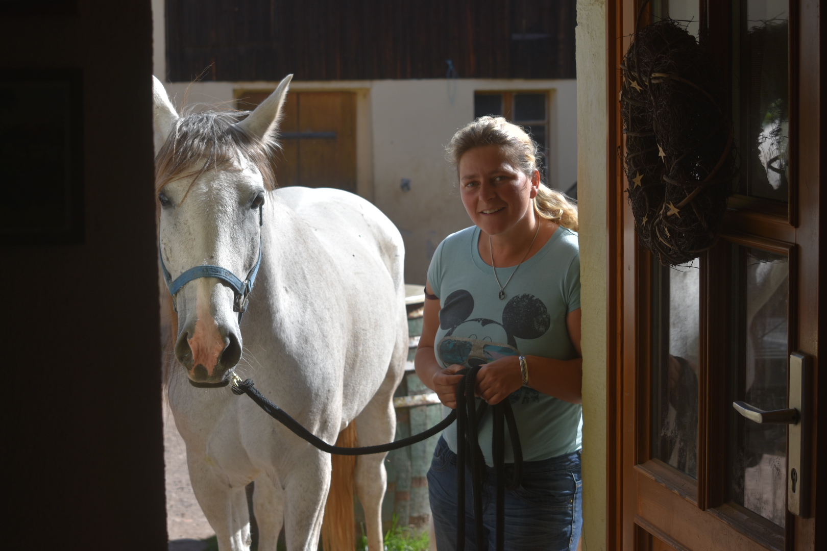 Der erste Schritt ins Reiterleben Heute durfte ich auf ihr sitzen und meine Tochter hat mich ein paar  Schritte geführt. Es war der erste Schritt ins Reiterleben. Und sie  bleibt sehr entspannt dabei. Die Hufe sind durch unseren Ritt in einer  guten Länge, wir üben weiter fleißig und werden heute Abend oder morgen  die Hufe behandeln. Sie ist eine tolle Stute.