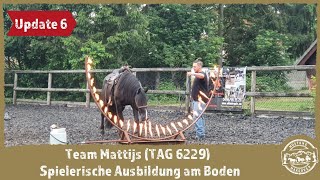 "Tag 6229 und ich haben bei dem schlechten Wetter hier mit Aquatraining begonnen, Reiten war im Moment wegen des starken Regens nicht möglich. Da meine Freiarbeit nicht sehr gut ist, fingen wir an, an diesem Bereich zu arbeiten. Er ist so klug und verständnisvoll... er versucht sein Bestes, um bei mir zu bleiben und auf meine Körpersprache zu reagieren. Die nächsten Tage werde ich bei der Freiarbeit bleiben, Fiero Muchacho lehrt mich so viel! Er ist ein großartiges Pferd!" Mattijs
