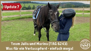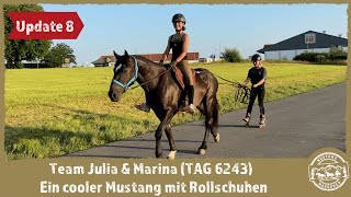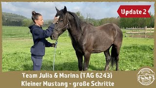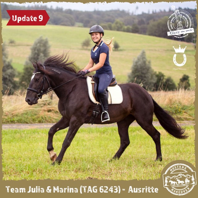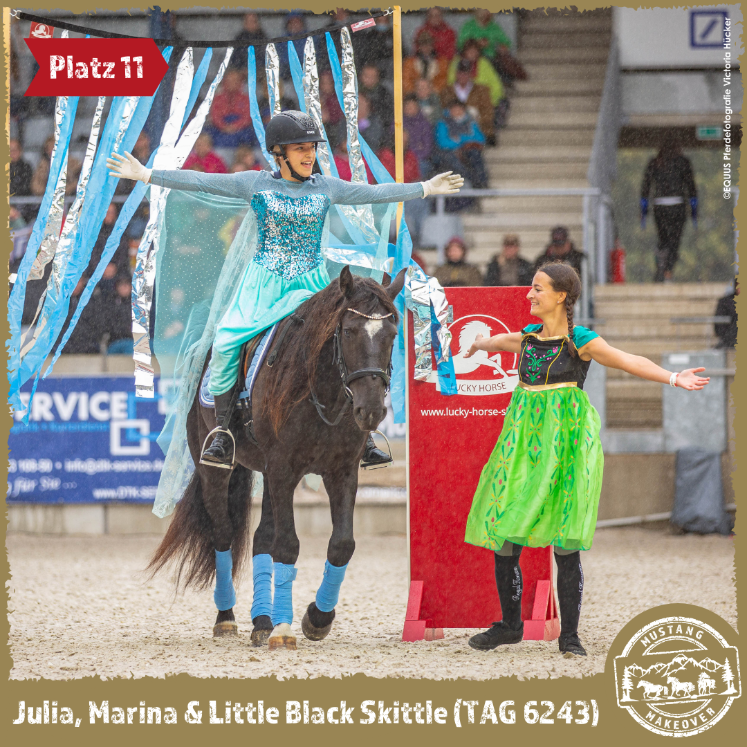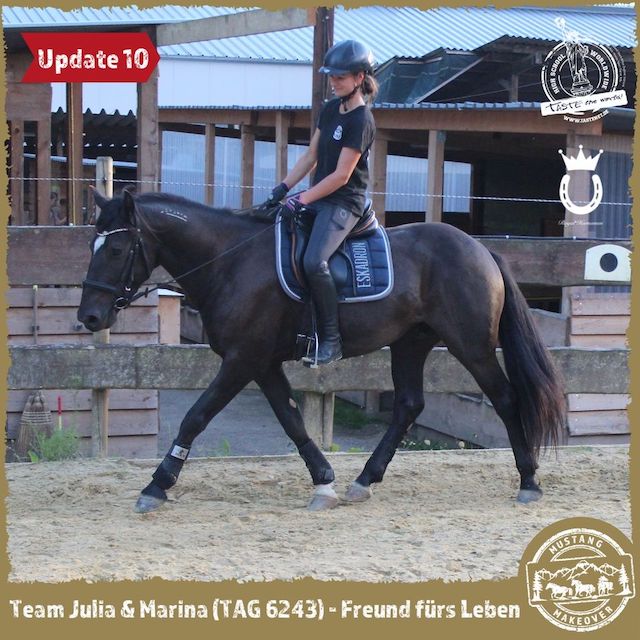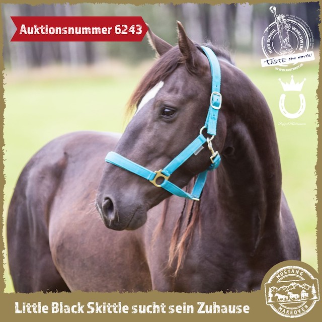 „Skittle ist einfach ein Mustang zum Verlieben! Mittlerweile ist er zu einem richtig tollen Reitpferd geworden. Vor allem Ausritte genießt er sehr und ist dort immer fleißig und neugierig unterwegs. Wenn man auf die Weide kommt, dann kommt er immer direkt angelaufen, um sich ein paar Krauleinheiten abzuholen. Er ist eine richtige Schmusebacke und dazu noch eine echte schwarze Schönheit.“ Julia und Marina